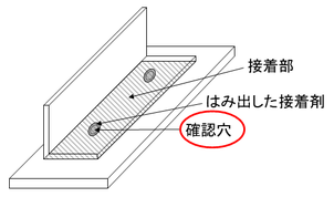 図13-37 確認穴によるはみ出し部が見えない部分での塗布、硬化の確認方法