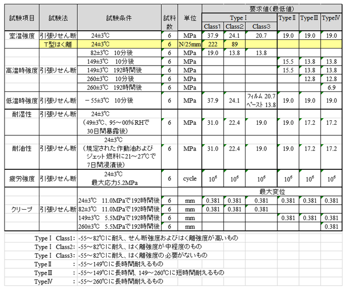 米国連邦規格MMM-A-132B (1994/4)「接着剤、耐熱性、航空機構造用、金属/金属」